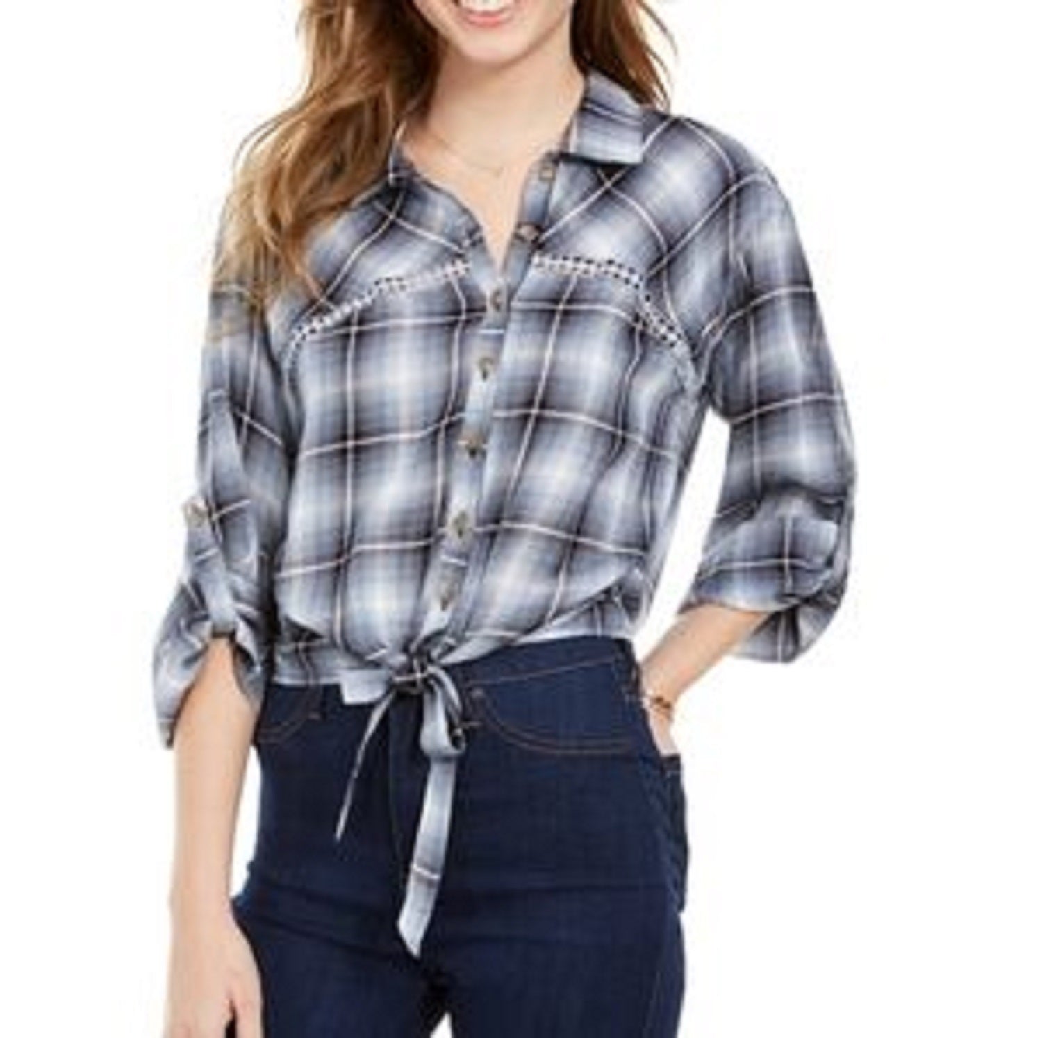 American Rag Juniors'' Crochet-Trim Tie-Front Top Dark Blue Size Medium