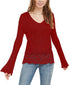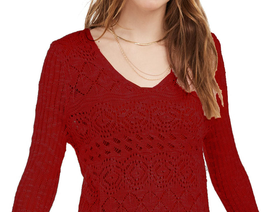 American Rag Juniors' Pointelle-Knit Flared-Sleeve Sweater Red Size Small