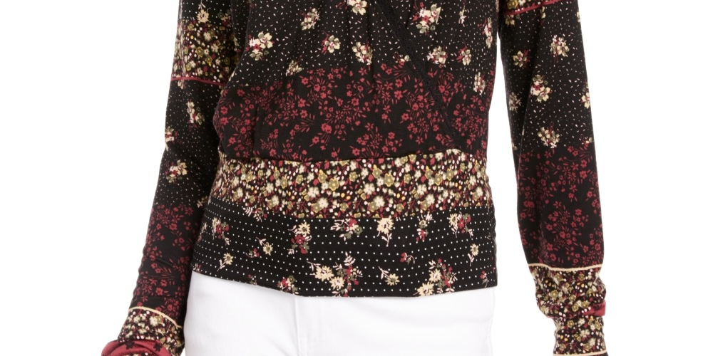 American Rag Junior's V Neck Printed Top Black Size XX-Small