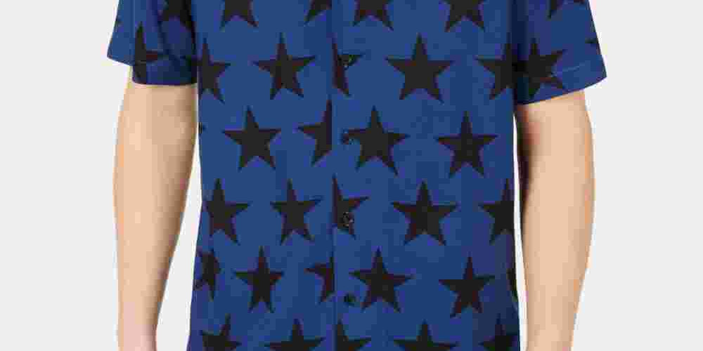 American Rag Men's Star Print Camp Collar Shirt Blue Size XX-Large
