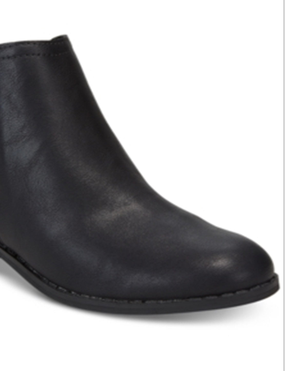 American Rag adds smooth lines to the Cadee booties with a curving notch to one side balanced by a quick side zipper on the other.| 1-1/2 block heel| Round-toe booties with a full side zipper; notche at side of topline| | Manmade or suede upper; manmade sole| Imported