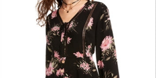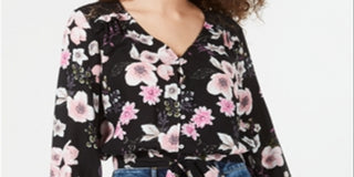 American Rag Junior's Floral Print Tie Hem Top Black Size Small