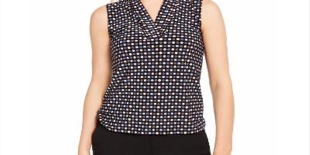 Anne Klein Women's Pearly Dot Pleated Neck Top Black Size X-Small