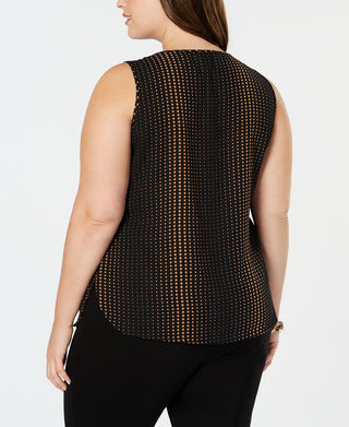 Anne Klein Women's Plus Printed Scoop Neck Sleeveless Top Black Size 3XL