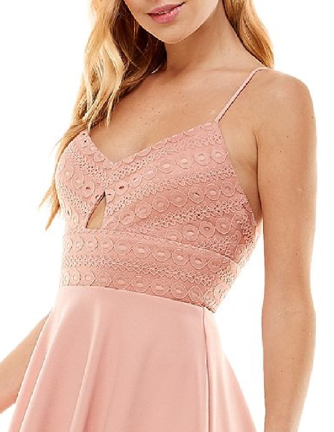 Bring on the feminine charm with City Studios' fit & flare dress| showcasing a lace bodice and tiered skirt.| Approx. 34 long from center back neck to hem. Length is based on size medium and varies 1/2 between sizes| Runs true to size; order your normal size| Fitted through the chest and waist; flared and flowing skirt| Lace bodice; Delicate and light texture; Scuba skirt; Structured and supportive | Sweetheart neckline; Fit & flare silhouette