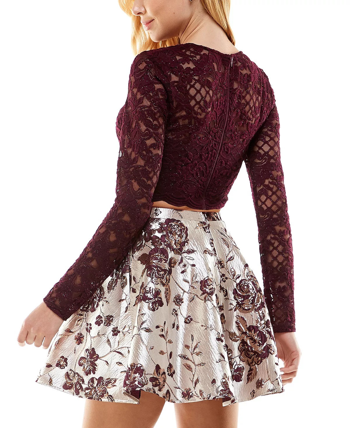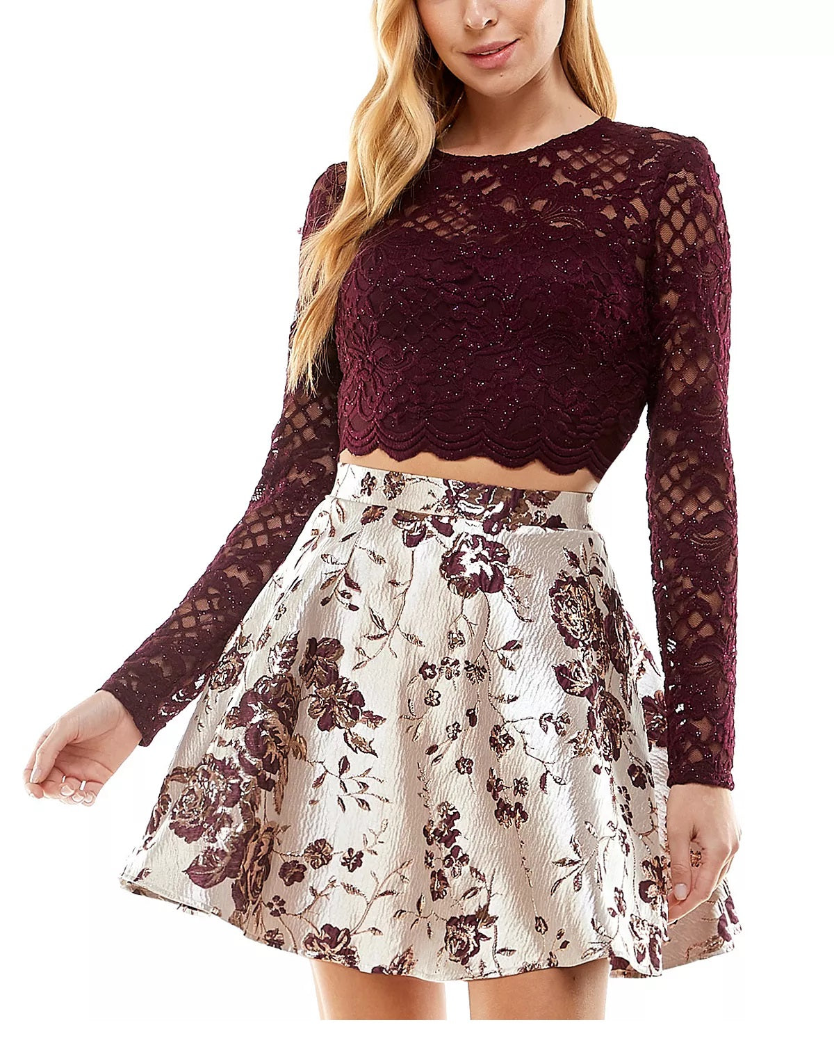 Homecoming heroes| Remix your dance look with this playful pair by City Studios| a glittery lace top and flouncy floral skirt