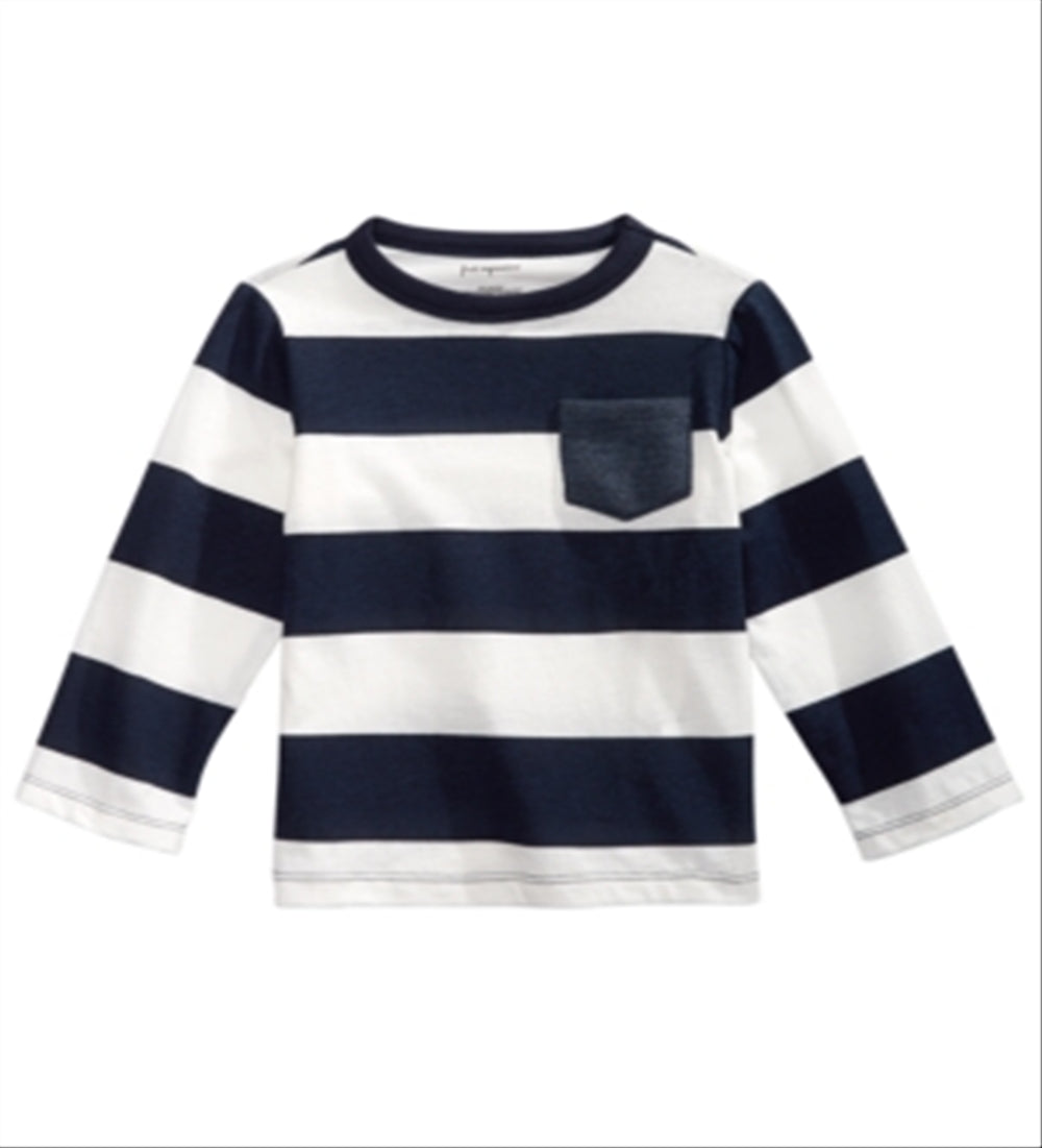 Classically striped and snuggle cute| First Impressions cotton rugby-striped T-shirt is the perfect addition to his laid-back look