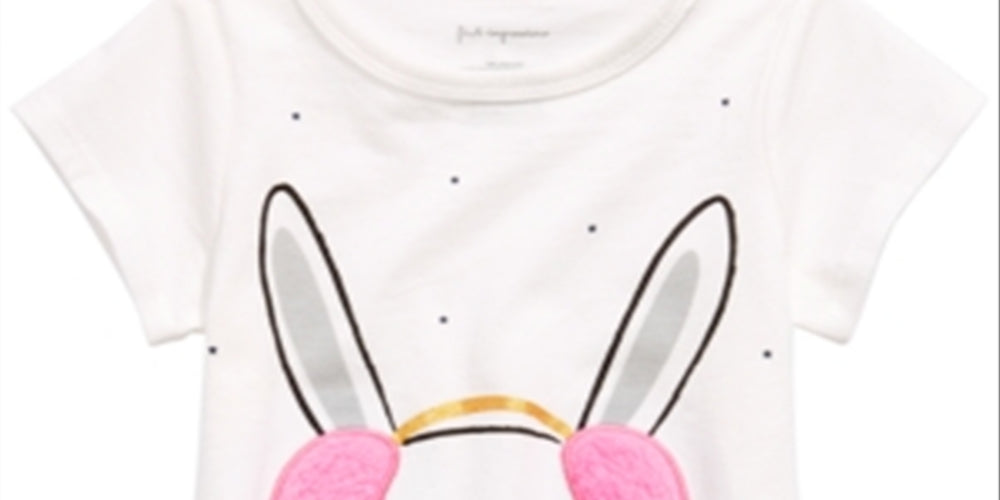 First Impressions Baby Girl's Bunny Print T-Shirt with Faux Sherpa Trim White Size 3-6 Months