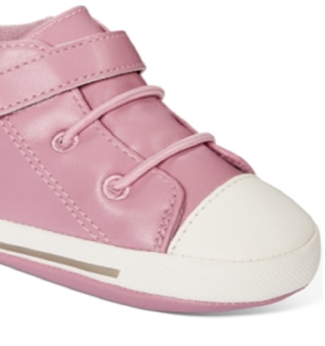 Sparkly little stars style the back of these sleek sneakers from First Impressions.| Stay-put closure and elastic laces| Star appliqué at back| Pull-on tab at heel| Faux leather (polyurethane) upper; faux leather (polyurethane) sole| Machine washable
