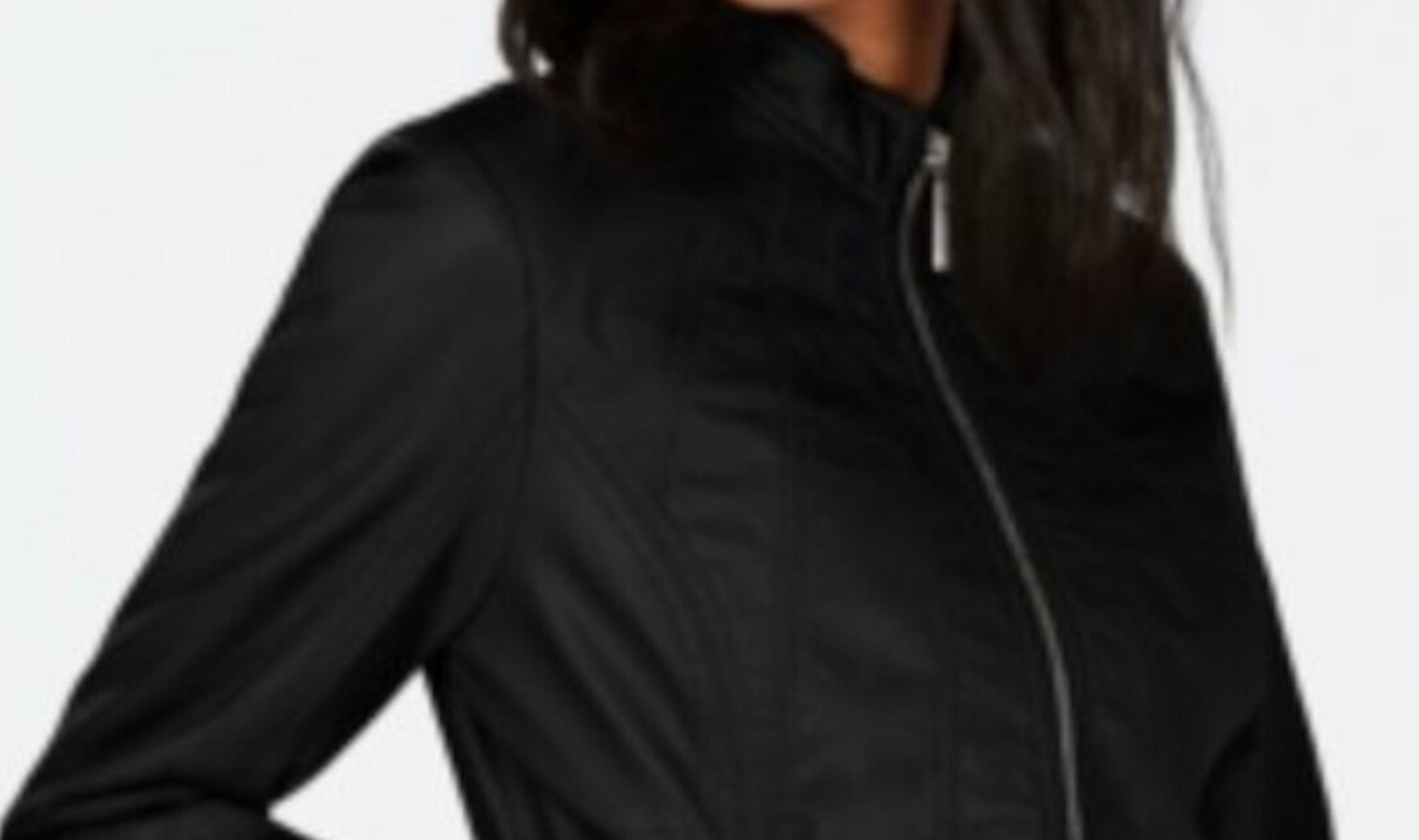 Jou Jou Women's Zippered Pocketed Vegan Leather Motorcycle Coat Juniors Black Size X-Large