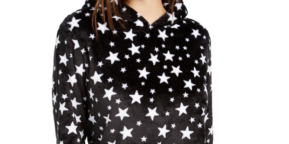 Love Tribe Junior's Star Print Plush Hoodie Black Size X-Large