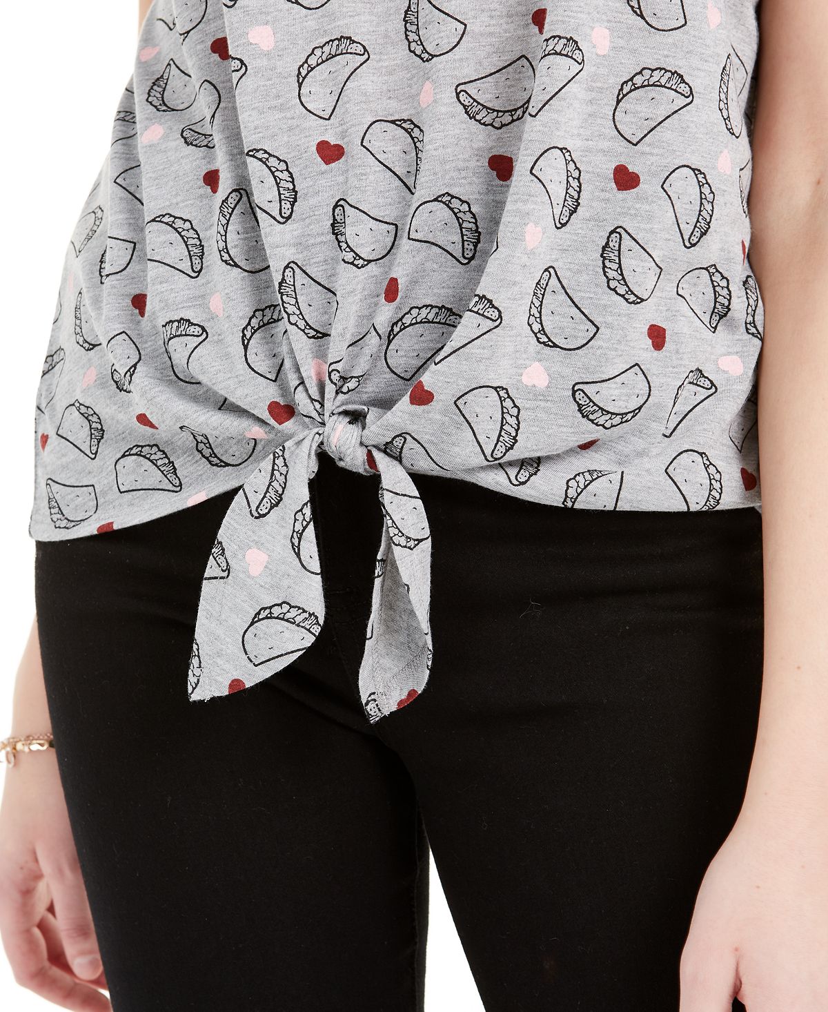Love Tribe Juniors' Taco Tie-Front T-Shirt Gray Size S