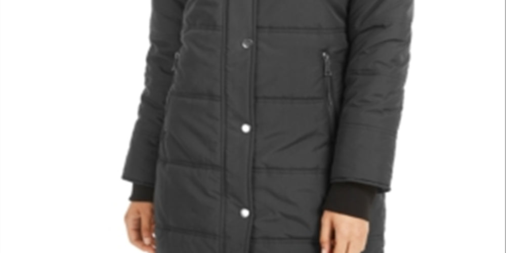 Maralyn & Me hits all the right style marks with this super cozy puffer coat| designed with playful faux-fur trim and knit cuffs for added protection.| Approx. 34 long from center back to hem| Removable hood with attached faux-fur trim & stand collar; front zipper closure with snap button overlay| Water-resistant| Three pockets at front