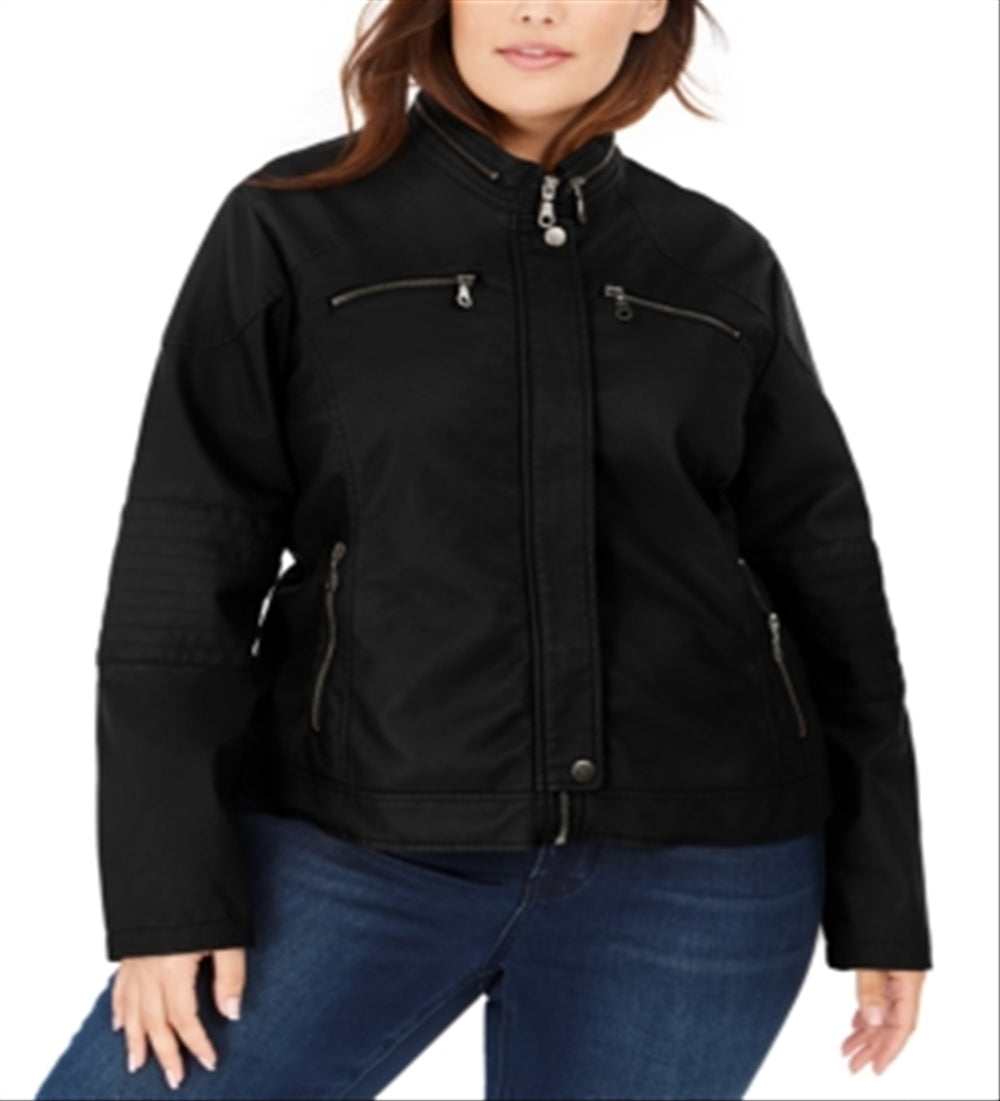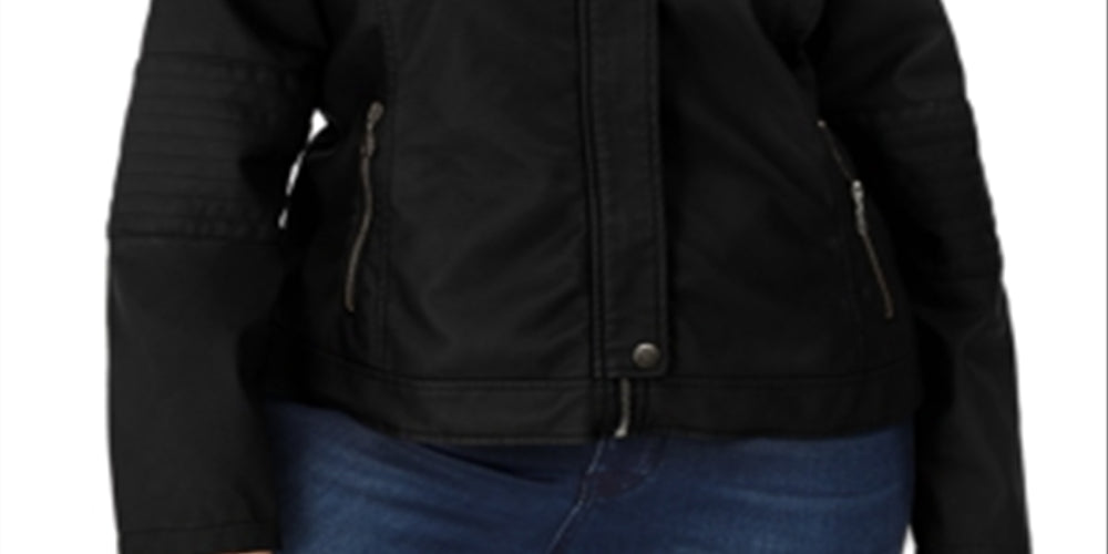 Maralyn & Me Junior's Faux Leather Moto Jacket Black Size 2X