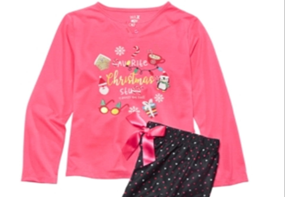 Max & Olivia Big Girl's 2 Pc Holiday Stuff Pajama Set Pink Size Large