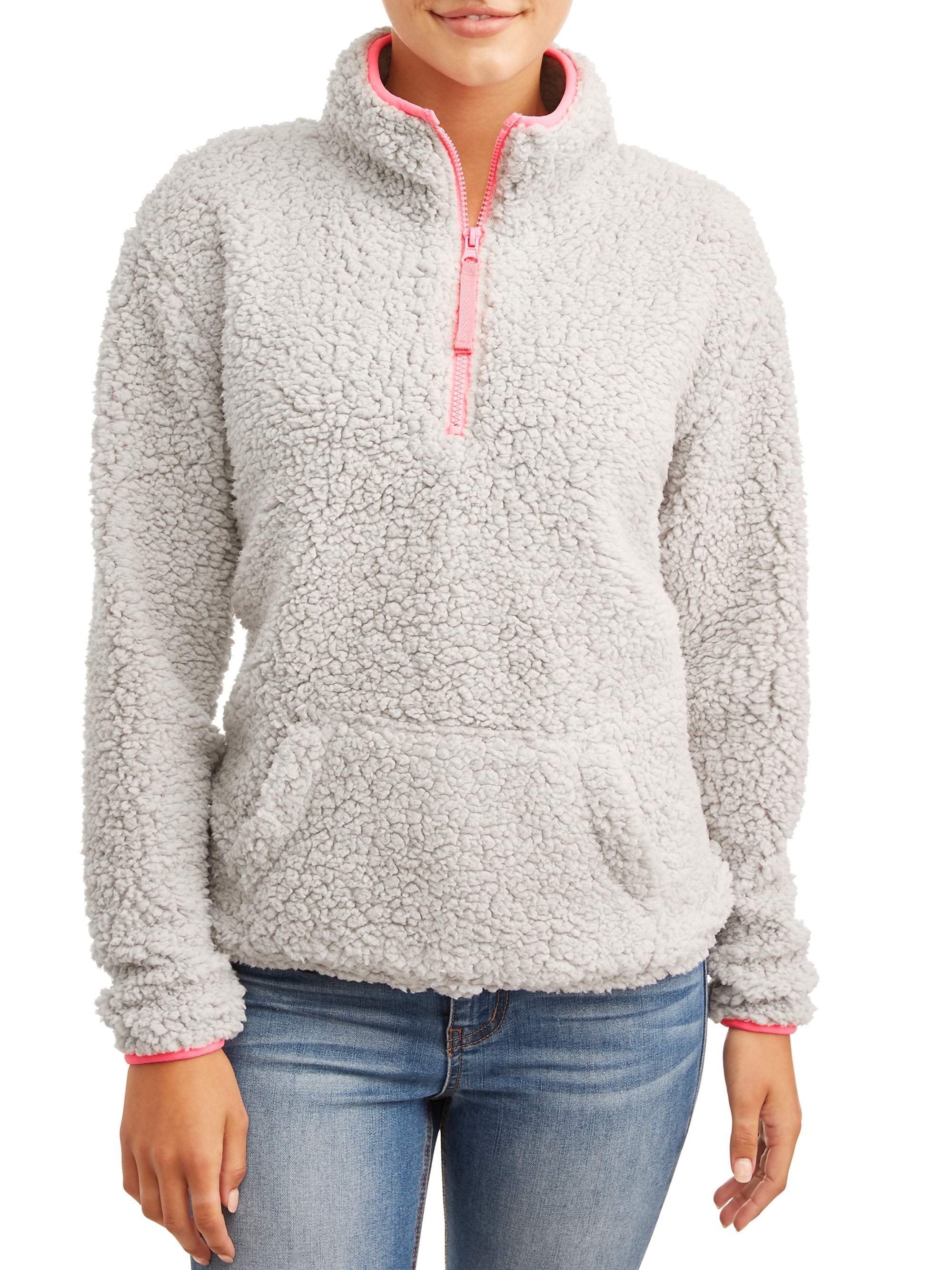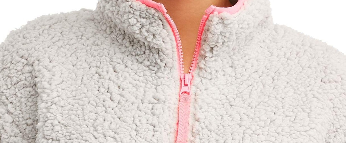 No Boundaries Juniors' Quarter-Zip Sherpa Pullover Sweater Gray Size Small