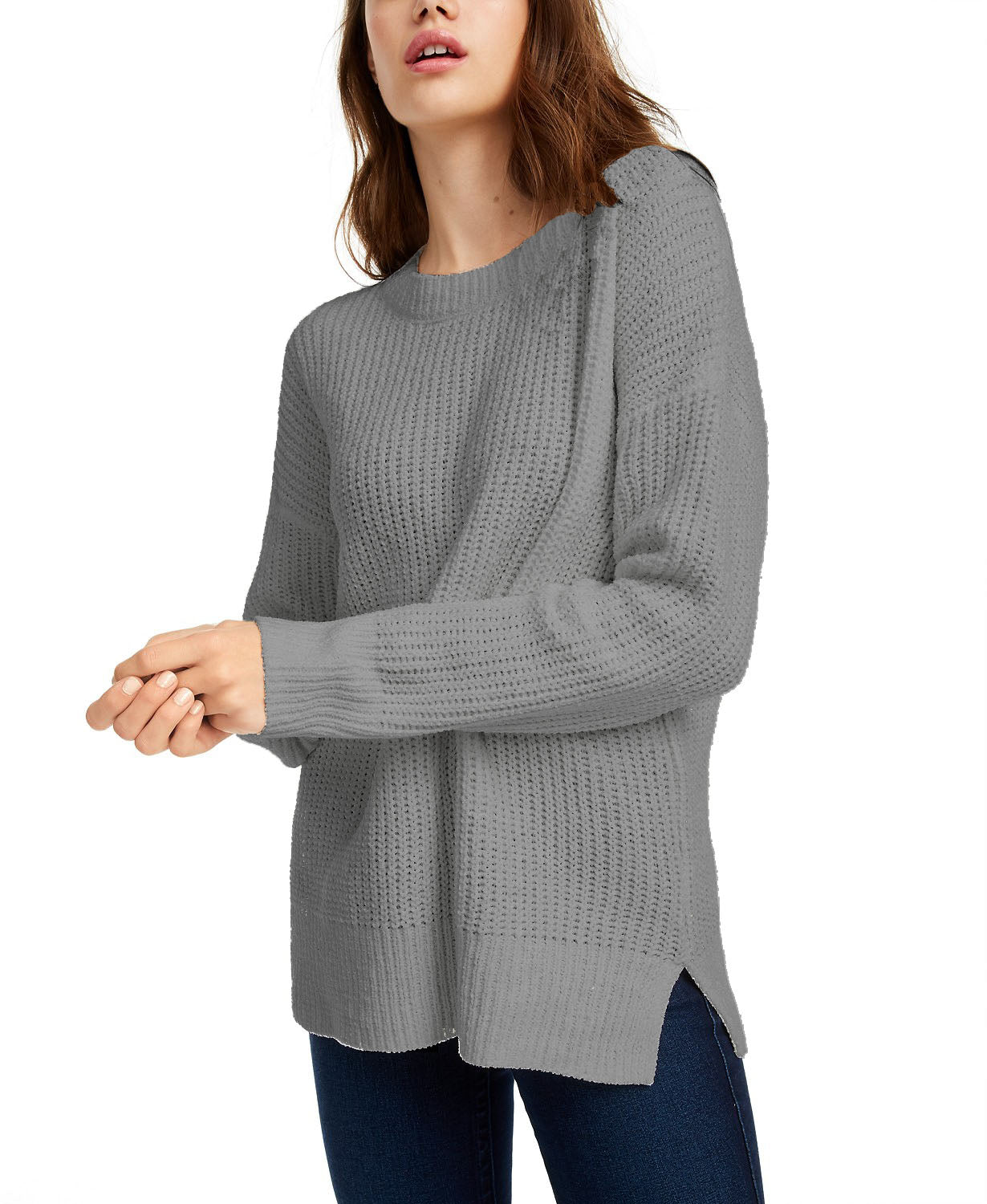 Pink Rose Juniors' Chenille Sweater Light Gray Size Small