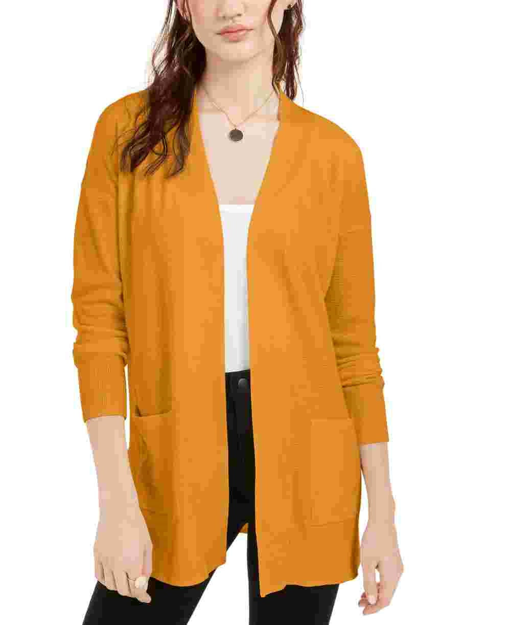 Pink Rose Junior's Open Cardigan Sweater Gold Size Medium