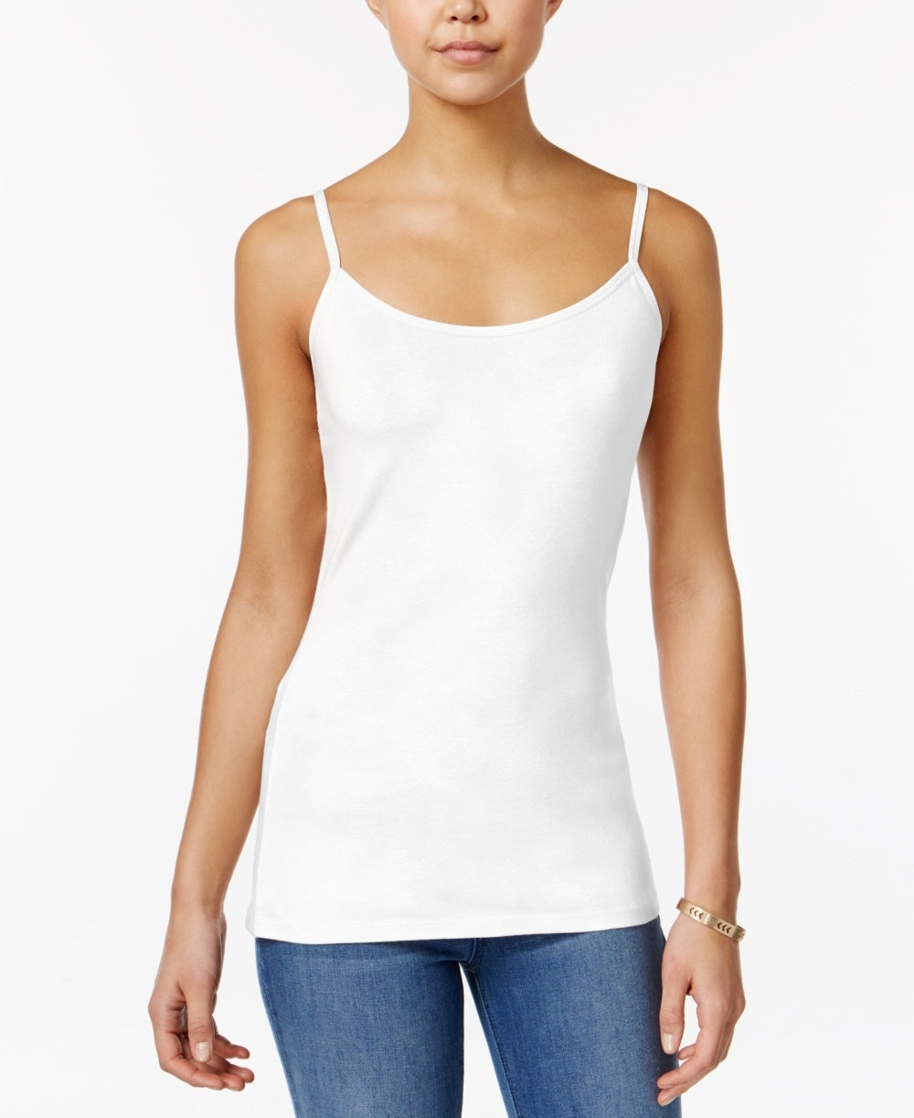Scoop neckline|Pullover styling|Adjustable spaghetti straps|Easy fit|Unlined|Hits at hip