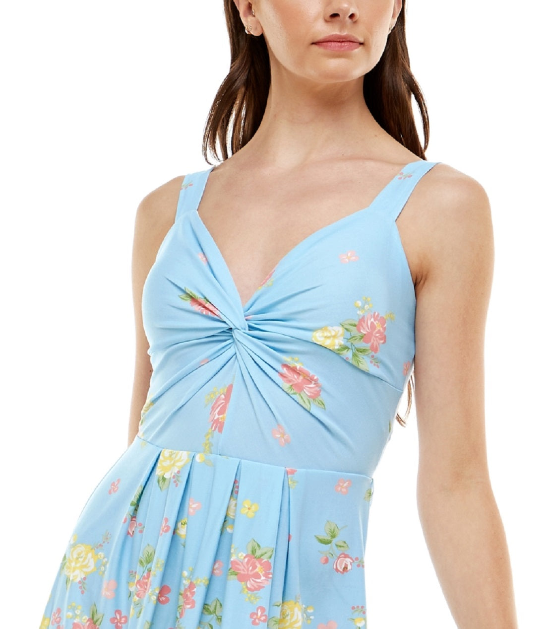 Planet Gold Junior's Floral Print Fit & Flare Dress Blue Size Large
