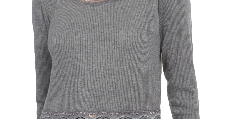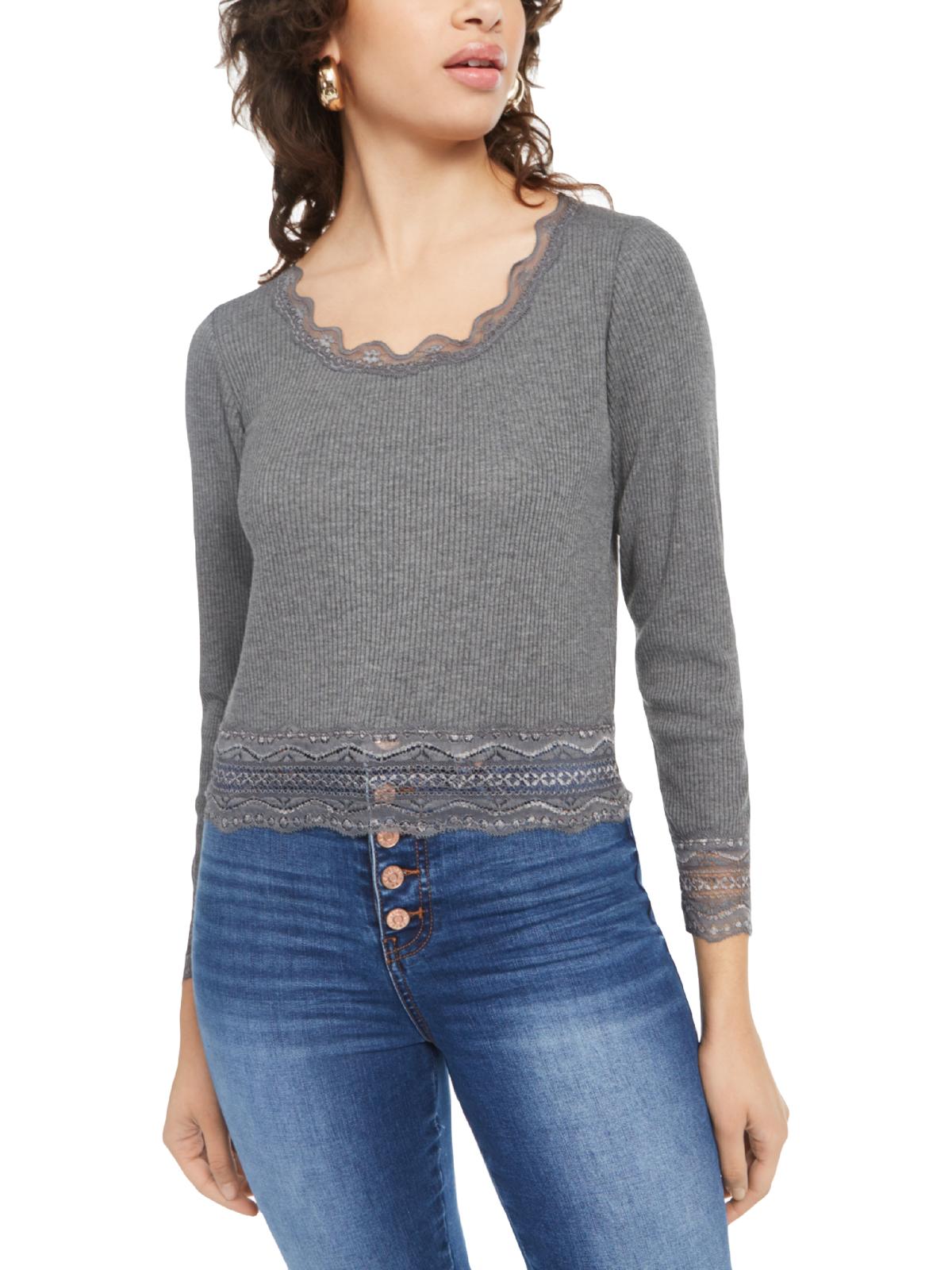 Planet Gold Juniors' Lace-Trim Top Gray Size Large