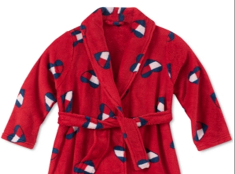 Plush with a playful print| this classic Tommy Hilfiger wrap robe helps her stay cozy and cute for after the bath or relaxing