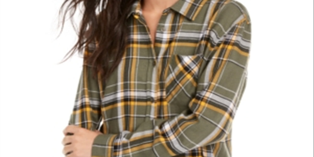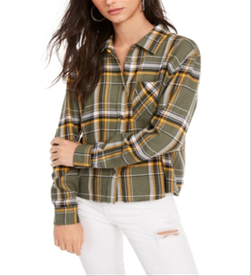Ultra Flirt Junior's Plaid Flannel Shirt Green Size Medium