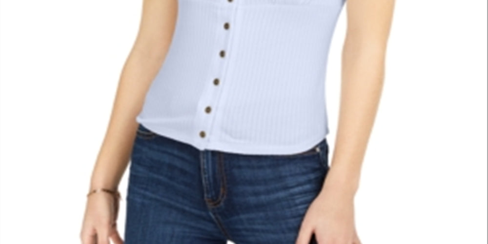 Ultra Flirt Junior's Rib Knit Button Front Top White Size Medium
