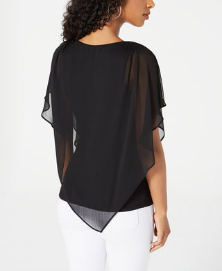 BCX Junior's Solid 3/4 Sleeve Chiffon Blouse Black Size Medium