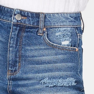 Tinseltown Juniors' Ripped Denim Mini Skirt Med Blue Size 1