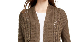 Pink Rose Juniors' Open Cardigan Sweater Dark Brown Size Medium