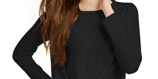 Almost Famous Junior's Crave Fame Cozy Twist Back Ribbed Top Black Size X-Small
