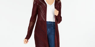 Hooked Up By IOT Juniors' Pointelle Open-Front Duster Cardigan Red Size Small