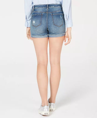 Vanilla Star Juniors' Mid-Rise Cuffed Jean Short Blue Size 11
