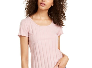 Pink Rose Junior's Rib Knit Lettuce Edged T-Shirt -Pink Size Small