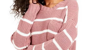 Hippie Rose Junior's Striped Sweater Pink/White Size Large