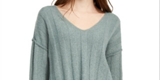 Pink Rose Junior's Ribbed Raw Hem Sweater Green Size Large