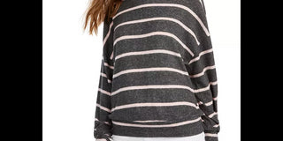 Gypsies & Moondust Junior's Cozy Striped Dolman Sleeve Top Pink/Grey Size X-Large
