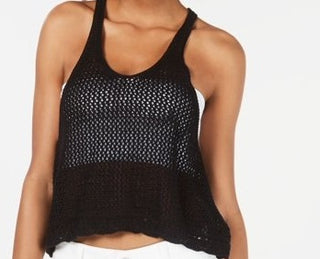 Hooked Up By Iot Juniors' Crochet Knit Tank Top Black Size X-Large