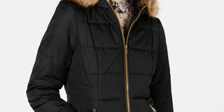 Celebrity Pink Junior's Puffer Coat With Faux Fur Trim Hood Black Size XX-Large