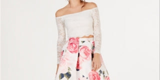 Teeze Me Junior's 2 Pc Off The Shoulder Lace & Floral Gown off White Size 5