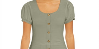 Pink Rose Junior's Ribbed Puff Sleeve Top Green Size Medium
