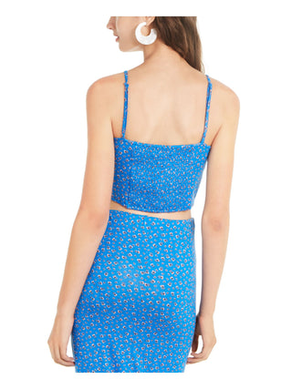 Material Girl Women's Juniors Floral Print Crop Top Blue Size Medium