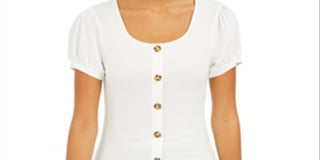 Pink Rose Junior's Ribbed Puff Sleeve Top White Size Medium