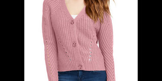 Pink Rose Junior's Eyelet Cardigan Sweater Pink Size Large