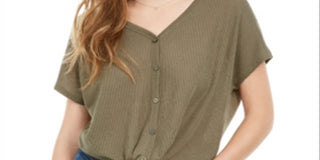 Pink Rose Junior's Tie Front Thermal Top Green Size S
