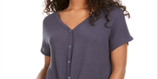 Pink Rose Junior's Tie Front Thermal Top Blue Size Small