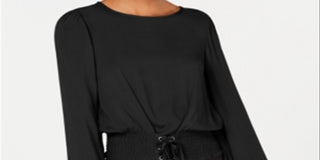 Love, Fire Junior's Smocked Waist Crop Top Black Size X-Large