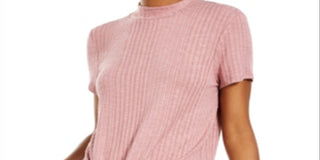 Pink Rose Junior's Mock Neck Tie Front Ribbed Top Pink Size Large