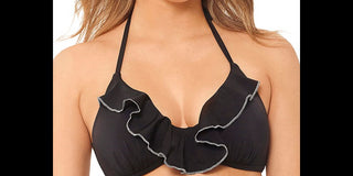 Salt + Cove Women's Juniors' Silver-Trimmed Push-Up Ruffled Bikini Top Black Size Medium